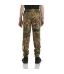 Exploring the world is more fun when he's comfy. These boys' Carhartt sweatpants combine the warm feel of fleece with a cool allover camo print. Go ahead and let him get dirty. Machine-washable fabric makes cleaning up easy.