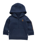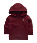 Boys of all ages love the cozy feel of fleece. This boys' half-zip sweatshirt from Carhartt pulls on easy and has a built-in hood for some extra coverage when your kid needs it. It's made from a fleece fabric blend with durable cuffs and hem band and a pouch pocket in front for tucking little hands.