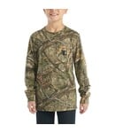 Bring the woods to you. Made for up-and-coming sportsmen, this boys' Carhartt pocket T-shirt blends into the environment with allover Mossy Oak® Country DNA camouflage. Durable, machine-washable cotton jersey fabric feels soft on the skin but is built to last.