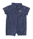 Mini-me Carhartt style for your little adventure buddy. This babies' romper has a classic collared design that looks like it's ready for a hard day of work. Of course, hard work here means giggling and exploring in the comfort of cotton chambray.