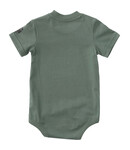 Dogs can teach kids about friendship and loyalty without saying a word. This Carhartt bodysuit shows his love of animals with dog graphics on the front. It's made from soft cotton fabric that stands up to whatever babies throw at it.