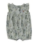 Born to bloom. A fresh floral-and-bee print plus ruffles give this baby girls' Carhartt romper a sweet look. But don't be fooled by the dainty exterior — the all-cotton fabric is easy to wash and tough enough to handle whatever kids throw at it.