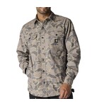 This men's shirt jac is warm enough to wear as a jacket on cooler days. It's made of canvas with built-in flex to give you the range of motion you need on the job. A soft fleece lining defends against the cold. The relaxed-fit layer comes equipped with handwarmer pockets and two snap pockets for your wallet or keys.