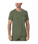 This men's Carhartt scrub top offers the best of both worlds: the relaxed feel of a t-shirt with the robust functionality of a professional scrub top. Engineered to withstand the demands of extended shifts and rigorous work environments, it's a reliable choice for healthcare professionals. Crafted from durable stretch polyester, it provides exceptional flexibility and long-lasting wear, ensuring you can move freely and comfortably throughout your day. Designed with practicality in mind, this scrub top features multiple pockets, offering ample storage for essential tools and personal items. A secure zip pocket ensures valuables remain safe and easily accessible. The integrated shoulder badge loop allows for clear and visible display of your ID, streamlining identification procedures and enhancing workplace efficiency. This Carhartt scrub top is built to endure, offering a blend of comfort, durability, and functional design. It's an essential piece for any professional who requires reliable workwear that can keep up with their demanding schedule.