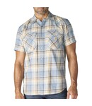 Built to move and flex, this men's short-sleeve western shirt feels comfortable whether you're on the job or out to dinner. Made from a lightweight cotton blend with shrink resistance and stretch recovery, it features brass-ring pearl snaps, a western yoke, and a relaxed fit.