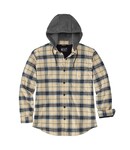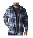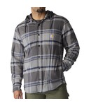 Stay warm while you work. This men's shirt jac is built for cold weather with a soft fleece lining and an attached hood. Stretch flannel and a relaxed fit allow you to lift boxes and swing a hammer with ease.