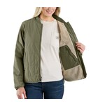 Keep working through cool, drizzly weather in this women's quilted jacket. Insulated for warmth and made with water-repellent technology that shrugs off light rain. Sherpa fleece in the upper body adds comfort, and side vents let the air in. A loose fit offers plenty of room to move.