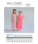 The girls basic dress pattern is available in 8 sizes ranging from 1-8. There are two style options with each pattern including an A-line skirt, a gathered skirt, fitted sleeve, and gathered sleeve patterns.
