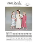 The girls knit patterns are exclusively for knit fabric. They're available in 12 sizes, ranging in sizes 1-16. There are 3 style options in each size, including a gathered skirt, A-line skirt, flared skirt and fitted sleeve has 3 length options. the neck is designed with a neckband - no zipper.