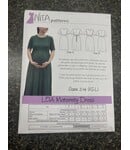 This cape dress pattern is shorter in the waist, with extra room in the bust and waist, and with gathers in the front skirt and slight gathers in the back skirt. A tie belt works well to make it adjustable. Zipper in the back.