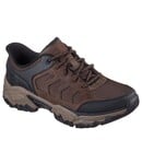 Embark on a new adventure in effortlessly rugged comfort with Skechers Hands Free Slip-ins® Relaxed Fit®: Terraform - Jagger. Designed with our exclusive Heel Pillow™, this outdoor trail slip-on features a roomy leather and mesh underlay upper with adjustable laces, a charcoal-infused Skechers Air-Cooled Memory® insole, Memory Arch™ cushioning for added support, and a durable anti-slip Goodyear® Performance Outsole.
