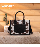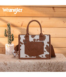Stand out with the Wrangler Cow Print Tote/Crossbody—versatile, eye-catching design perfect for bold, everyday western style!