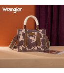 Stand out with the Wrangler Cow Print Tote/Crossbody—versatile, eye-catching design perfect for bold, everyday western style!