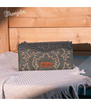 Secure your essentials with Wrangler's Embroidered Bi-Fold Wallet—elegantly crafted, RFID protected, and perfect for chic western style!