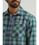 When there are new frontiers to be explored, the Wrangler ATG™ Men's Adventure 365 Shirt is along for the ride—anytime, anywhere. It’s crafted from a lightweight cotton blend with a hint of stretch and box pleats in the back to keep you moving in total comfort. It features a regular fit that’s not too tight or too loose, just right for layering over a shirt on cooler days. It comes with a moisture-wicking finish to keep you dry and built-in UPF 40+ to shield you from the sun’s harmful rays. Plus, you’ll have chest pockets to keep essentials, a sunglasses cleaner at the hem, and a convertible sleeve system to adapt on the fly.