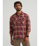 When there are new frontiers to be explored, the Wrangler ATG™ Men's Adventure 365 Shirt is along for the ride—anytime, anywhere. It’s crafted from a lightweight cotton blend with a hint of stretch and box pleats in the back to keep you moving in total comfort. It features a regular fit that’s not too tight or too loose, just right for layering over a shirt on cooler days. It comes with a moisture-wicking finish to keep you dry and built-in UPF 40+ to shield you from the sun’s harmful rays. Plus, you’ll have chest pockets to keep essentials, a sunglasses cleaner at the hem, and a convertible sleeve system to adapt on the fly.
