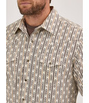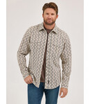 Look good while feeling good in the men's Wrangler Retro® long-sleeve western snap printed shirt. This contemporary take on the classic style you love comes packed with all the distinctive details, including pointed front and back yokes, single-needle stitching at the placket, modern fit, contrast trim, two snap cuffs, and two chest flap pockets with snaps. This long-sleeve snap shirt features a modern fit and it's crafted from cotton for comfort, minimal wrinkling, and long-lasting looks. Complete the outfit with Wrangler Retro jeans.