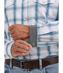 Our men's Wrangler Retro® Premium long-sleeve western snap plaid shirt delivers all the authentic western styling you love but with a modern fit that's perfect for the contemporary cowboy. It's crafted from cotton for all-day comfort and long-lasting durability. Plus, it features pointed front and back yokes, contrast trim, snap cuffs, and a full snap closure. You can easily wear this long-sleeve snap shirt all year long, and it looks great layered over a white t-shirt. Complete the look with your favorite pair of Wrangler Retro bootcut or slim-fit jeans.