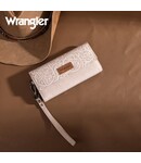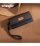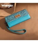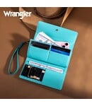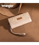 Secure your essentials with Wrangler's Western Floral Tooled Tri-fold RFID Wallet/Wristlet—elegantly crafted, RFID protected, and perfect for chic western style!