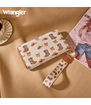 Add western flair to your essentials with the Wrangler Western Print RFID Blocking Zippered Cowgirl Wallet—featuring a fun cowgirl design, organized compartments, and everyday functionality.